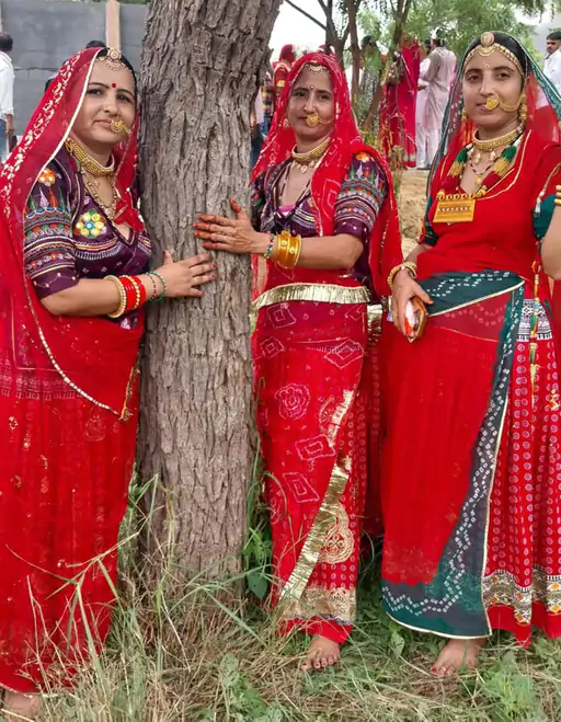 जोधपुर जिले के खेजड़ली गांव में बुधवार को खेजड़ी के पेड़ों की रक्षा के लिए 295 साल पहले हुए शहादत दिवस की याद में आयोजित शहीदी मेले में महिलाएं सोने के गहनों से लदी हुई नजर आईं। यह मेला बिश्नोई समाज के लिए न केवल सांस्कृतिक और धार्मिक महत्व रखता है, बल्कि यह उनकी पहचान और परंपराओं को भी जीवित रखता है। इस अवसर पर कई महिलाएं सिर से पैर तक सोने से सजी हुई थीं, जिनमें नर्सिंग ऑफिसर से लेकर व्यवसायिक परिवारों की बहुएं शामिल थीं। इन महिलाओं ने 40 से 50 तोला तक सोने के गहने पहन रखे थे, जिनकी कीमत लाखों रुपए में थी।